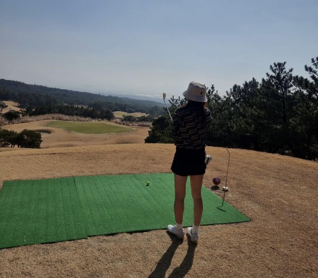 라운딩 당일 기온은 약 18도 정도로 무척 포근했습니다. 겨울이지만 제주의 남쪽 바람 덕분에 두꺼운 패딩은 전혀 필요 없었습니다.